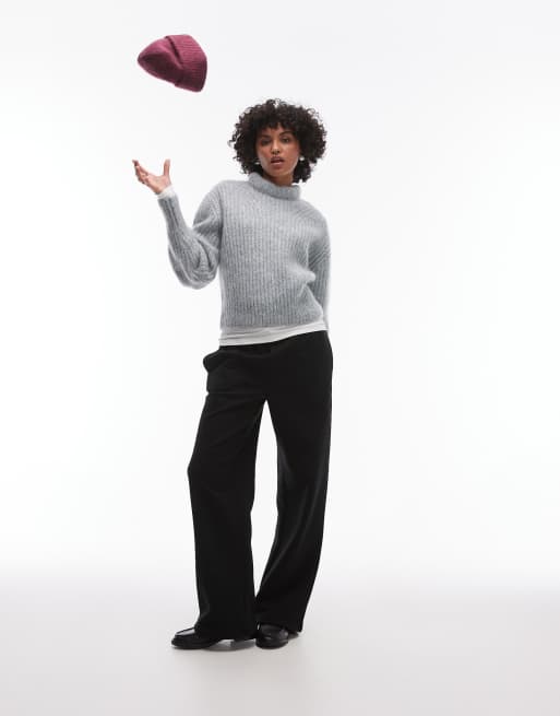 & Other Stories – Superweicher, gerippter Mohair-Strickpullover in Grau