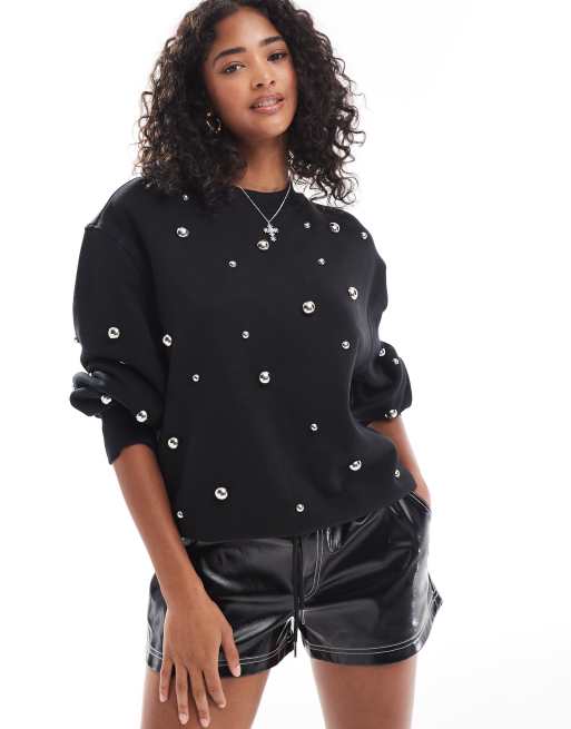 & Other Stories – Sweatshirt in Schwarz mit silberfarbener All-over-Nietenverzierung