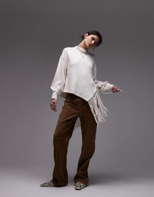 & Other Stories – Sweatshirt in Wollweiß mit asymmetrischem Fransensaum