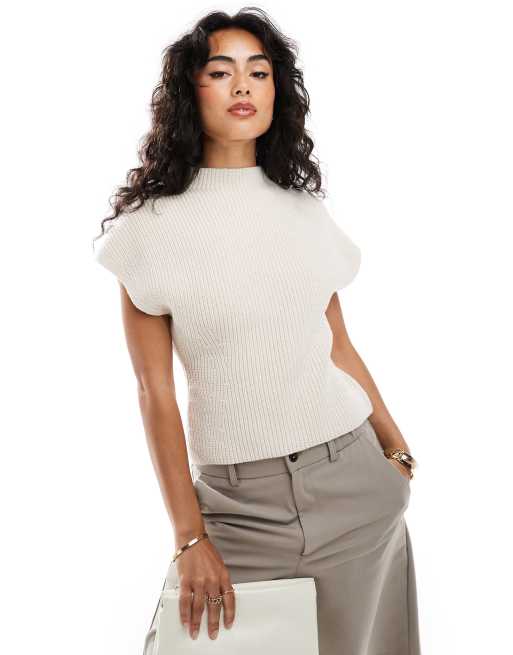 & Other Stories – Tailliertes Rippstrick-Tanktop aus Wollmix in gebrochenem Weiß mit tiefen Armausschnitten