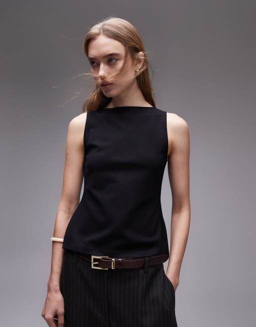 & Other Stories – Trägertop aus Jersey in Schwarz mit U-Boot-Ausschnitt