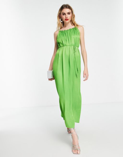 & Other Stories – Voluminöses Maxi-Trägerkleid aus strukturiertem Satin mit geflochtenem Gürtel