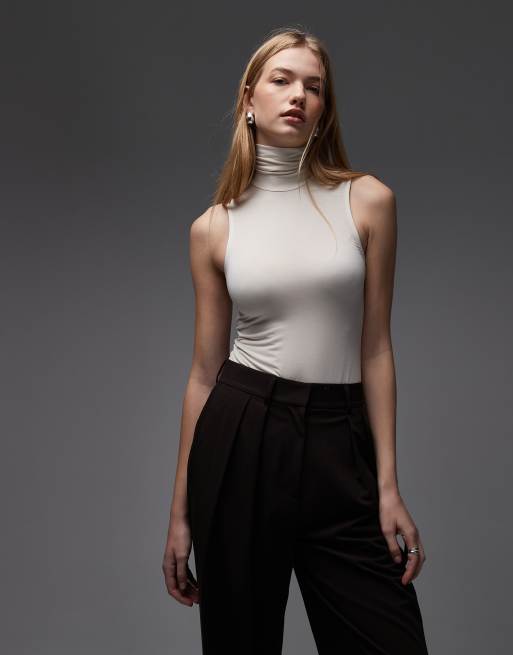 & Other Stories – Weiches, ärmelloses Oberteil in Weiß mit Stehkragen