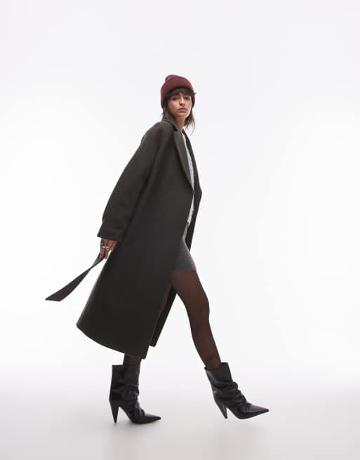 & Other Stories – Wollmantel in dunklem Khakigrün mit Bindegürtel