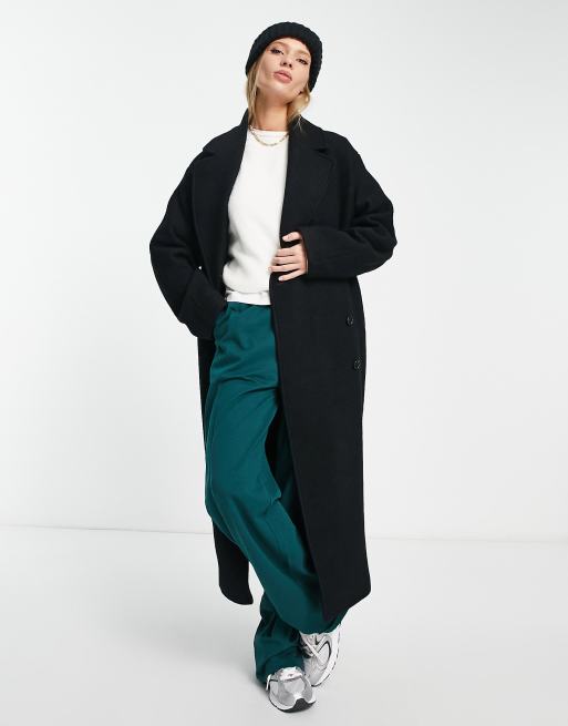 & Other Stories – Wollmantel in Schwarz mit Bindegürtel