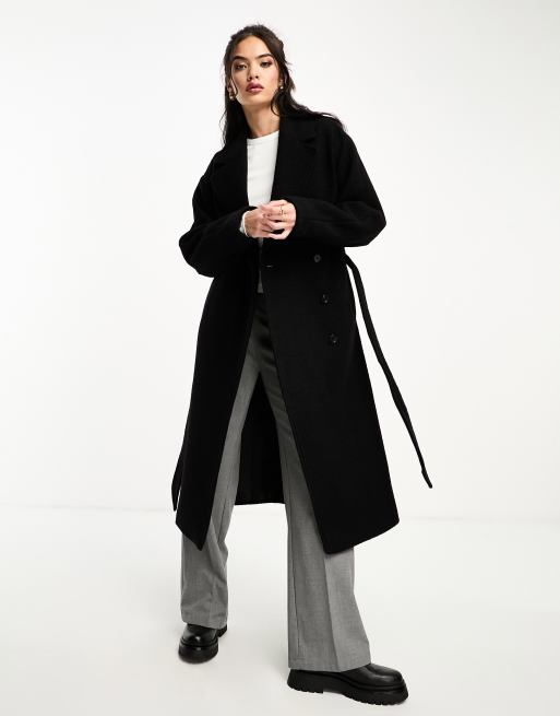 & Other Stories – Wollmantel in Schwarz mit Bindegürtel