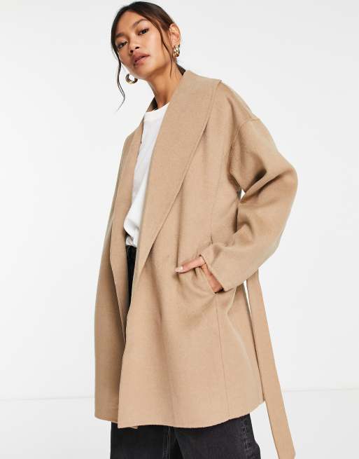 & Other Stories – Wollmix-Mantel in Beige mit Bindegürtel - BEIGE