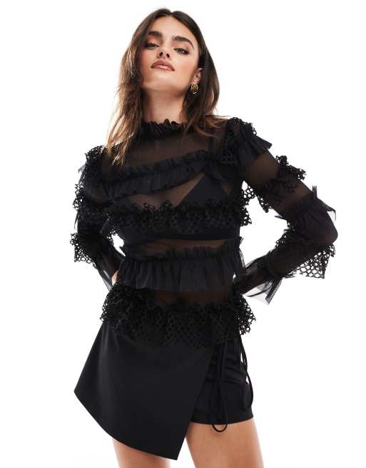 OW Collection – Grace – Langärmliger Body in Schwarz