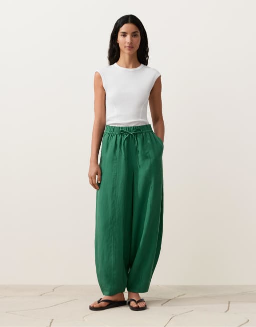 OYSHO – Ballonhose aus Lyocell-Mix und 24% Leinen in Grün mit Ziernähten