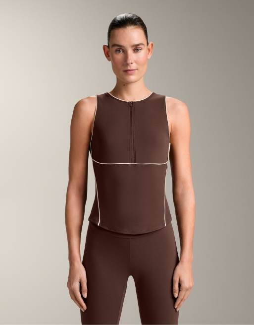 OYSHO – Comfortlux – Ärmelloses Tanktop in Dunkelbraun mit Paspelierung
