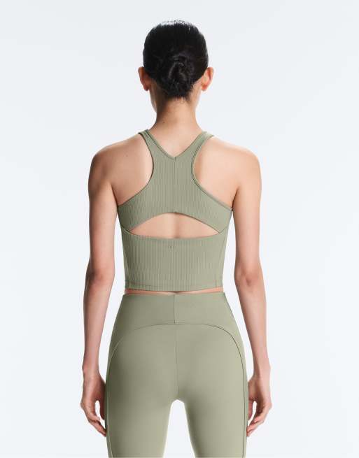 OYSHO – Comfortlux – Geripptes Neckholder-Tanktop in Hellgrün