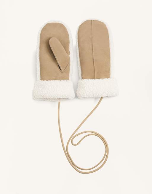 OYSHO – Fäustlinge aus Wildleder und Lammfellimitat in Braun geröstet mit Kordel