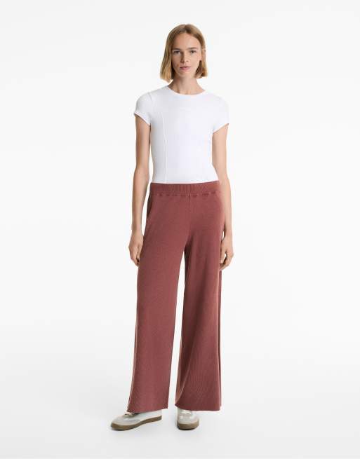 OYSHO – Gerade geschnittene Hose aus gewaschenem Strick in Dark Rosette