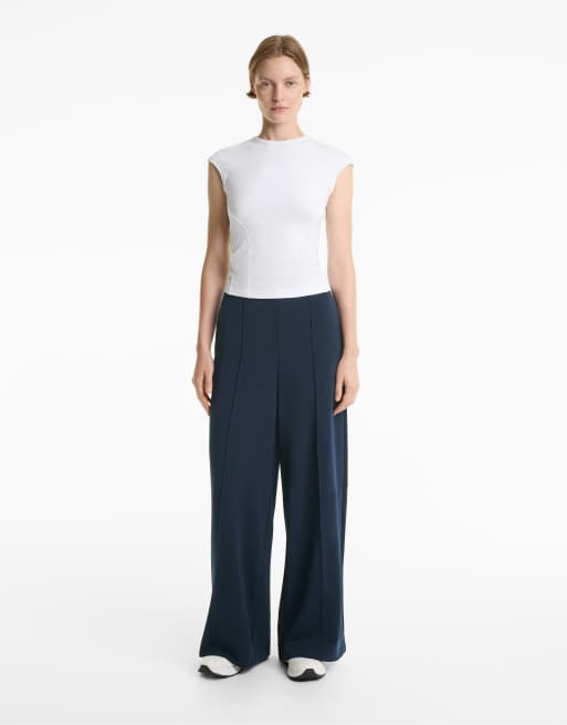 OYSHO – Gerade geschnittene Hose aus Modalmix in Marineblau mit Bügelfalte