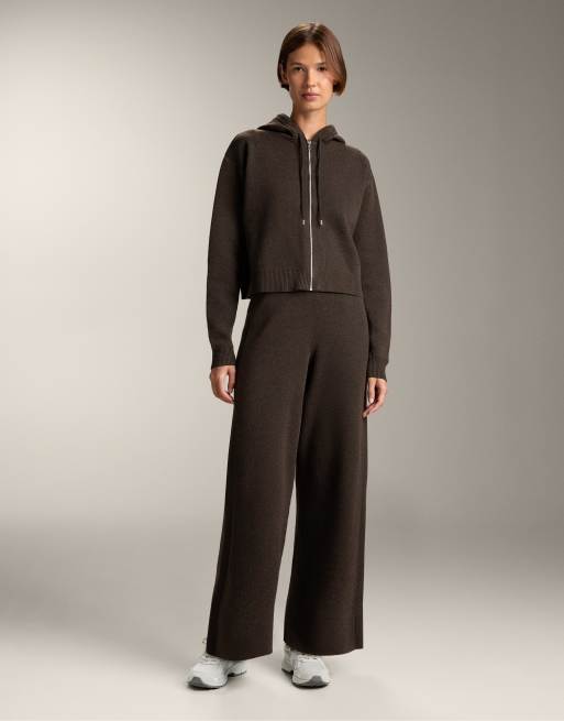 OYSHO – Gerade geschnittene Hose aus Strick in Braun mit seitlichem Rippdetail