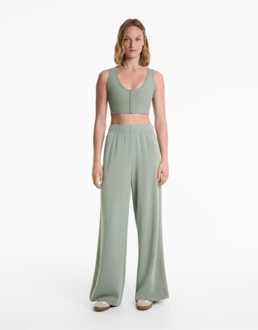 OYSHO – Gerippte Hose aus weichem Modal in Blaugrün mit geradem Beinschnitt