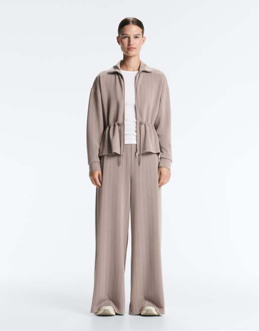 OYSHO – Gestreifte Hose aus weichem Modal in blassem Taupe mit weitem Bein
