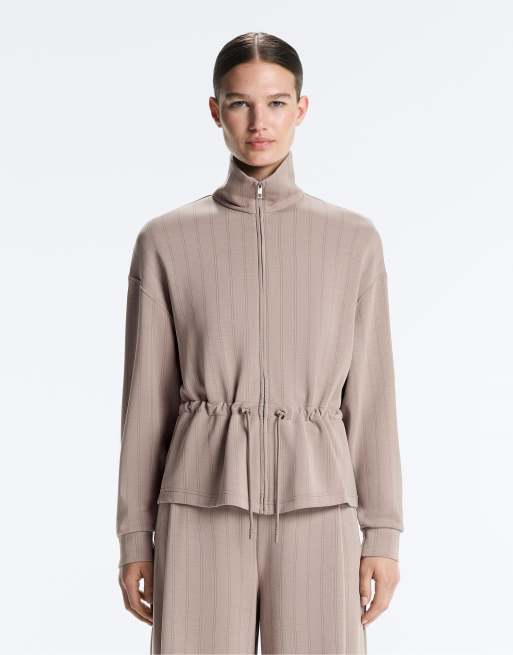 OYSHO – Jacke aus weichem Modal in blassem Taupe mit verstellbarer Taille und hohem Kragen