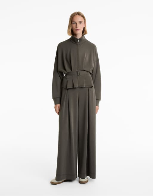 OYSHO – Jacke in Schwarz mit Gürtel und weichem Modal