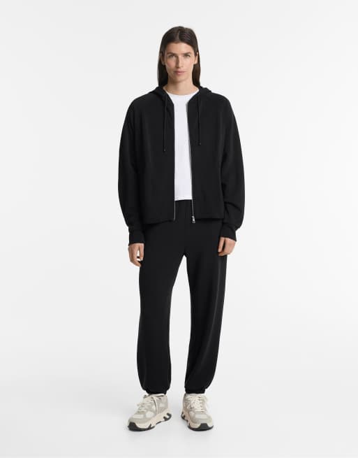 Oysho – Kastige Kapuzenjacke aus Modalmix in Schwarz