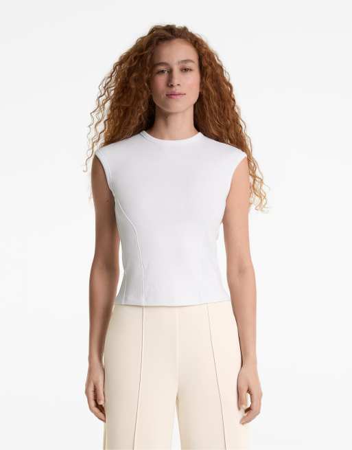 Oysho – Kurzärmliges Oberteil aus geripptem Modal-Baumwoll-Mix in Wollweiß