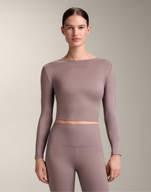 OYSHO – Langärmliges T-Shirt aus Lyocell-Mix in Flieder mit Knotendesign