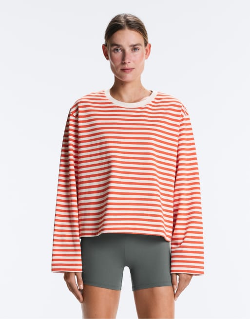 OYSHO – Langarmshirt aus Baumwolle in Orange gestreift