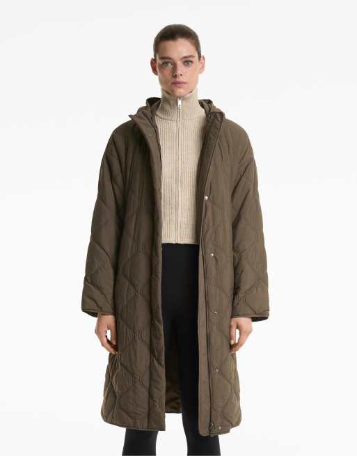 OYSHO – Lange, wasserabweisende Jacke in Braun mit fellex®-Aerogel-Wattierung