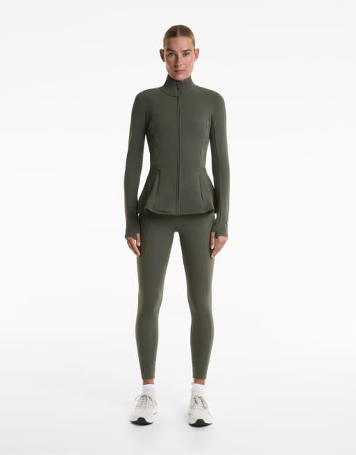 OYSHO – Leichte, warme Jacke aus Funktionsstoff in Grün mit Schößchen