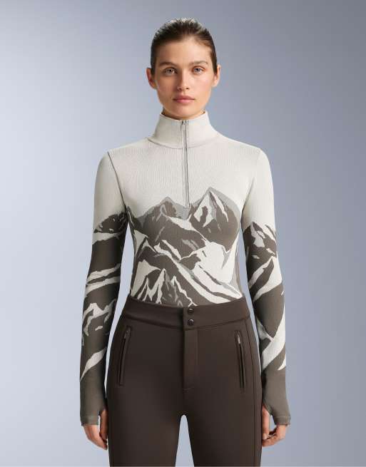 OYSHO – Nahtloses Baselayer-Thermo-T-Shirt in Hellrosa mit Print und kurzem Reißverschluss