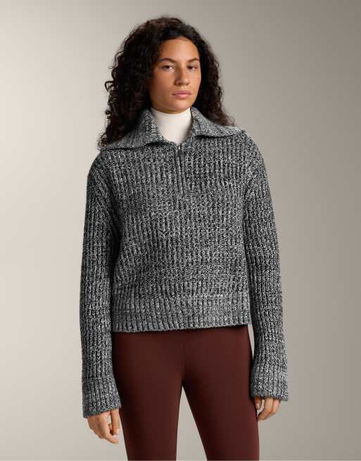 OYSHO – Pullover aus verdrehtem Strick in Schwarz mit kurzem Reißverschluss