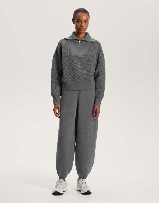 OYSHO – Strickhose in meliertem Dunkelgrau in Kokon-Passform