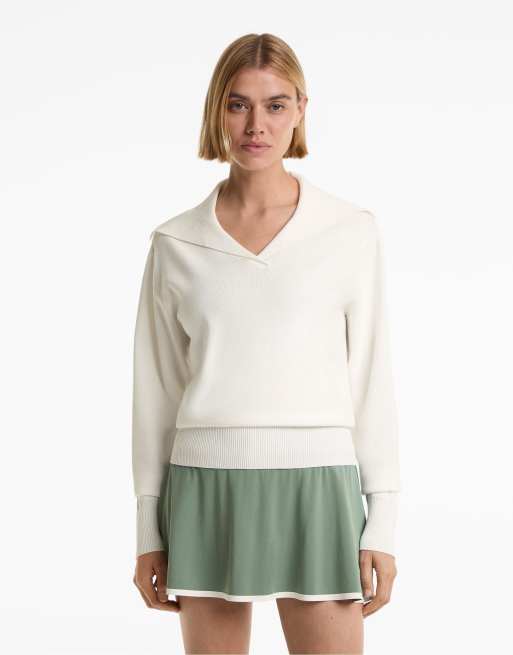 OYSHO – Sweatshirt in Wollweiß mit Polokragen