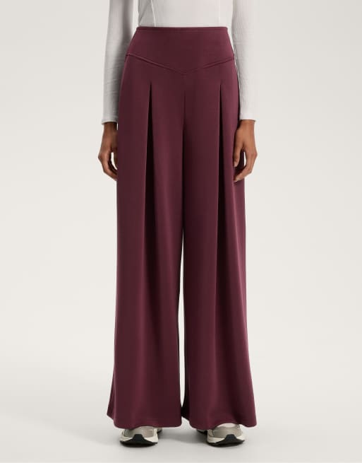 OYSHO – Weit geschnittene Hose aus weichem Modal in dunklem Kastanienbraun mit Bundfalte
