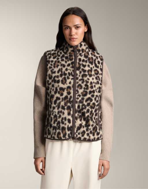 OYSHO – Weste aus Lammfellimitat in Sandbeige meliert mit Leopardenmuster