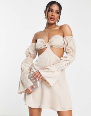 Parallel Lines – Mini-Skaterkleid aus Satin in Natur mit Zierausschnitt