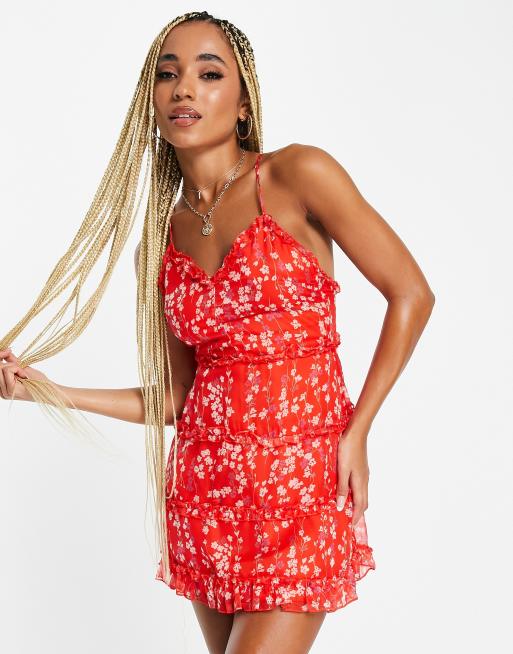 Parisian – Gestuftes Minikleid in Rot mit Blumenmuster