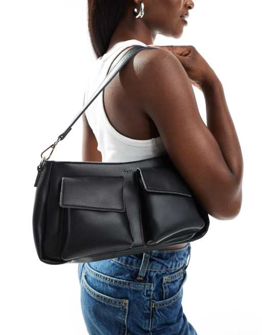 PASQ – Schultertasche in Schwarz mit mehreren Fächern