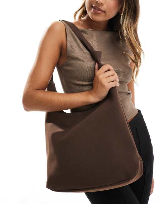 PASQ – U-förmige Boho-Schultertasche in Braun aus Wildlederimitat