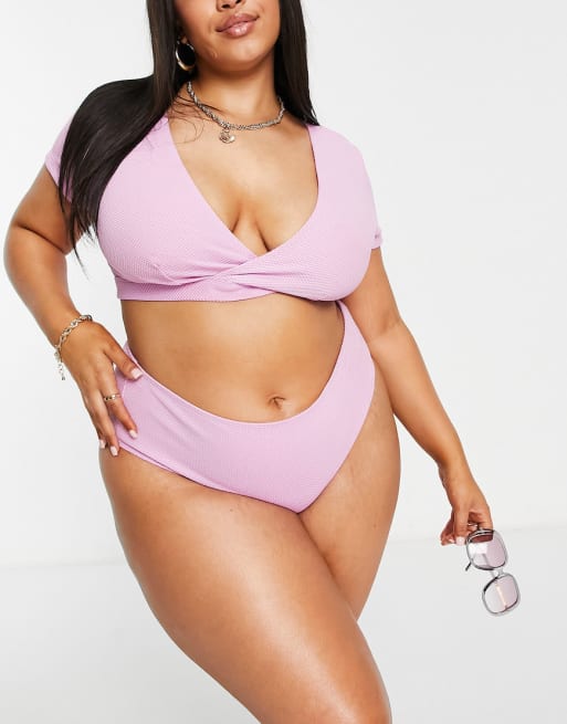 Peek & Beau Curve – Exclusive – Bikinioberteil in Lila mit Struktur und Flügelärmeln
