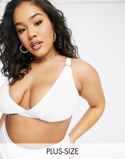 Peek & Beau Curve – Exclusive – Strukturiertes Triangel-Bikini-Set in Weiß