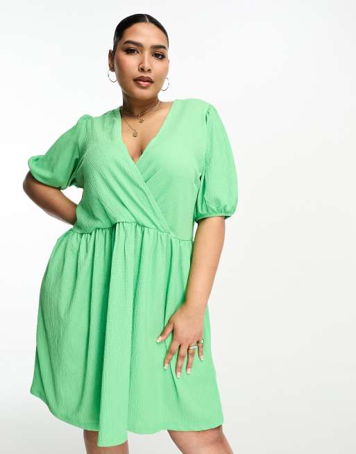 Pieces Curve – Exclusive – Strukturiertes, gesmoktes Minikleid in leuchtendem Grün mit V-Ausschnitt