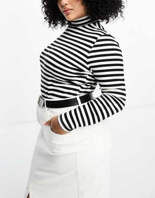 Pieces Curve – Hochgeschlossenes Oberteil in Schwarz und Weiß gestreift