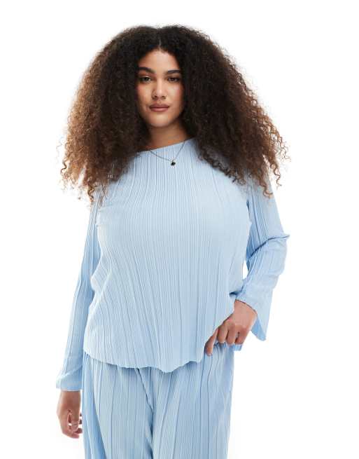 Pieces Curve – Plissiertes, langärmliges Oberteil in Hellblau, Kombiteil