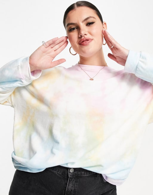 Pieces Curve – Set mit Jogginghose und Sweatshirt in pastellfarbenem Batikmuster