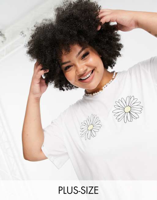 Pieces Curve – T-Shirt mit Gänseblümchen-Motiv in Weiß