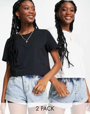Pieces – 2er-Pack kurze T-Shirts in Schwarz und Weiß