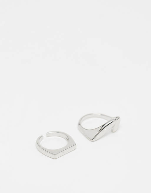 Pieces – 2er-Pack Ringe in unregelmäßiger und Schienenform in Silber