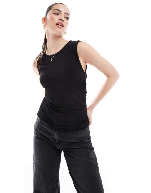 Pieces – Ärmelloses Jersey-Oberteil in Schwarz mit Rüschen