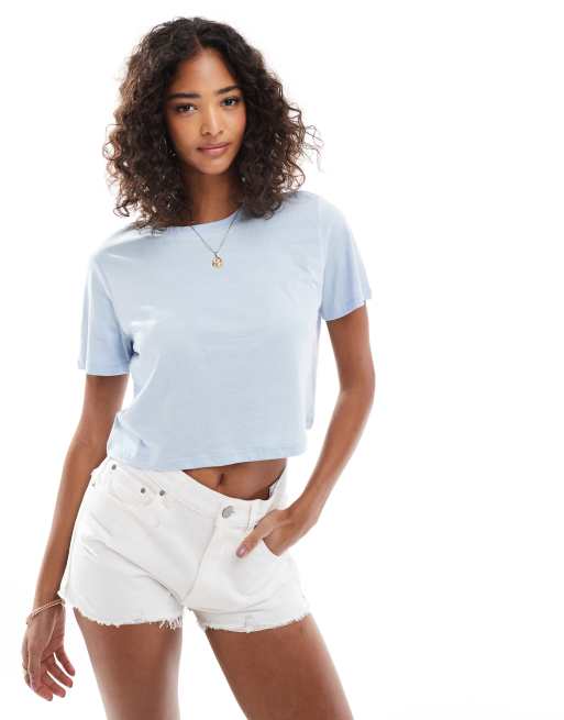 Pieces – Cropped-T-Shirt in Chambray-Blau